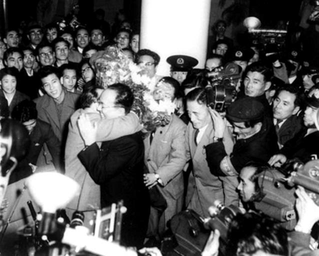 Keywords: Kanemon Nakamura III Returns from Beiging China 6 Nov 1955.jpg 時亡命 先の中国・北京から三年ぶりに帰国した三代目中 翫右衛 (右・ 鏡)と出迎える四代目河原崎長十郎 http //mainichi jp/select/wadai/newsbox/box/archive/news/2009/11/20091029org00m040016000c html est mid-1950s 毎日新聞 1955-11-06 PD-Japan-oldphoto Kanemon Nakamura III Uncategorized 2014 November 3