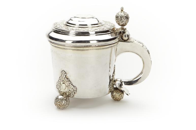 Keywords: Kanna med lock, av silver - Skoklosters slott - 92203.tif Fredrik I av Sverige plain text sv Tre gjutna kulfötter med fästen och kulformigt tumgrepp med bandornament Nästan utnött förgyllning På locket och handtaget drivna ornament av samma art I locket infattad medalj Fredrik I 1721 Inuti omförgylld Ristat 90 lod <br/>Stämplar Tre kronor - Borås stadsstämpel - EW SB 2660 - D Erik Wibeck Borås 1762 original caption Kanna med lock av silver <br/> Nyckelord 1700-tal Prydnad Dryckeskärl Silver Kannor Prydnader Föremålsbild 1762; 1721 size mm 200 SKO place of origin original filename sm_dig8545 21509 inventory number SKO 194 92203 CC-BY-SA Erik Lernestål Silver Cans Beakers 18th-century works Erik Lernestål Media contributed by LSH unmatched creator Media contributed by LSH 2014-11 |