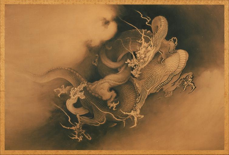 MAKE A MEME View Large Image Japanese - Two Dragons in Clouds - Google Art Project.jpg Shimonoseki Japan 1828 Tokyo Japan 1888 Kanō Male 810046 Hōgai Japanese 1828 - 1888 /collection/philadelphia-museum-of-art/artwork/two-dragons-in-clouds-kano-hogai-japanese-1828-18...