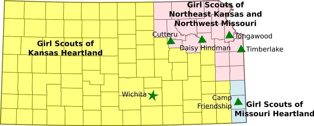 | Keywords: Kansas-gsusa.svg Map of Girl Scout Councils in Kansas own Originally uploaded on en wikipedia 2008-12-17 Uploaded on Commons at 2012-03-20 19 07 42 UTC /Originally uploaded at 2008-12-18 02 34 56 Emma Pease Transferred by evrik/Originally uploaded by Erp Erp en en Category Girl Scouts of the USA Council maps Original upload log page en wikipedia Kansas-gsusa svg Upload date User Bytes Dimensions Comment 2008-12-18 02 34 56 Erp 73162 8403×3388 <small><nowiki> Map of Girl Scout Councils in Kansas my work based on the wikipedia county map for Kansas 17-December-2008 Emma Pease </nowiki></small> Scouting in Kansas Girl Scouts of the USA Council maps |
