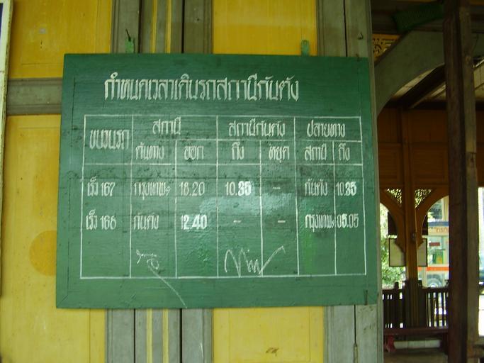| Keywords: Kantang railway 20061231 PB230160.JPG The Kantang railway station is situated in Amphoe Kantang Trang province south of Thailand Kantang is one of the oldest towns in southern Thailand 2000 years ago it was an important port with the town standing on the mouth of the river Merchants from India and Arabia landed their goods at Kantang port and transported across the peninsula to Surat Thani and Nakhon Si Thammarat to be traded with the silks and treasures from China They did this to avoid having to travel through the Strait of Malacca where there were lots of pirates The station was operated since April 1 1913 It is the end of the rail line of the Southern Andaman route The building is in its original 1900s Sino-Portuguese architecture 7 41084 N 99 51468 E type landmark_region TH Kantang Kantang Station |