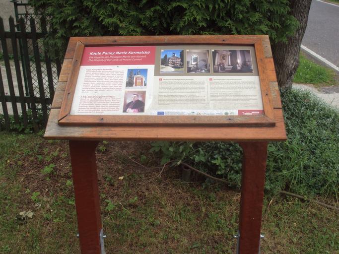 Keywords: Kaple Vlčí Hora info.JPG cs Tabule Vlčí Hora prý kostel je kaple own Zákupák 2013-06-21 Church of Our Lady of Mount Carmel Vlčí Hora