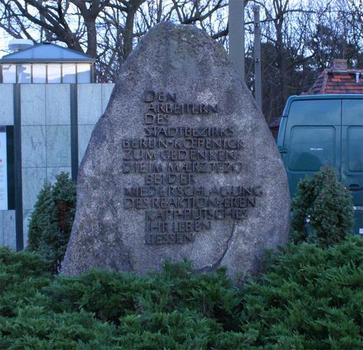 MAKE A MEME View Large Image Kapp Putsch memorial, Berlin-Grünau.jpg Gedenkstein für die Köpenicker Opfer des Kapp-Putsches auf dem Marktplatz von Berlin-Grünau Bezirk Treptow-Köpenick Memorial for Köpenick's victims of the Kapp Putsch on the market place of ...