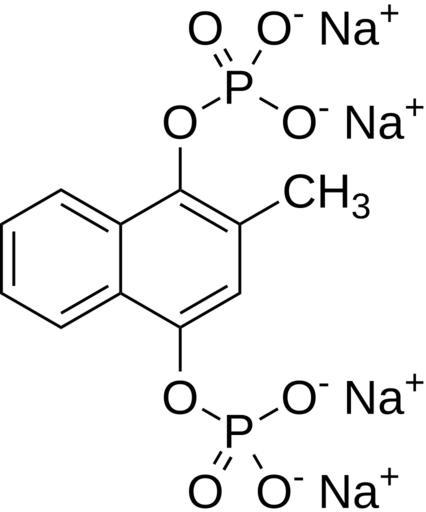 Keywords: Kappadione.svg Chemical structure of kappadione Own 15 37 25 October 2010 UTC Edgar181 <span class signature-talk >talk</span> Organophosphates Sodium salts of organic compounds Naphthalenes Vitamin K
