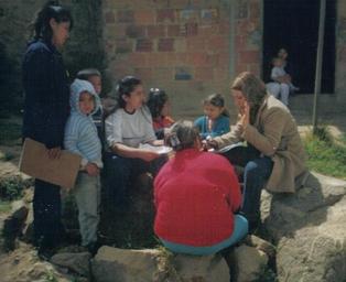 Keywords: Karen Marón entrevistando a desplazados por la violencia en Bogotá. Colombia.jpg es Karen Marón entrevistando a desplazados por la violencia en Bogotá Colombia 2003-03-30 own Mdressi other versions cc-zero Karen Maron