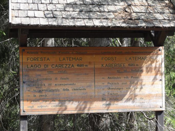 | Keywords: Karersee 6.jpg  Gemeinde Welschnofen ital Nova Levante Bezirksgemeinschaft Salten-Schlern ” Provinz South Tyrol ” Region Trentino-Südtirol ital Trentino-Alto Adige ” Italy Forst Latemar/Karersee ” Schild mit Verhaltensmaßregeln own 2011-05-26 13 58 43 User Mattes Commonist 46 4103363889 11 5753983333 EXIF data regarding date and time may be inaccurate Bilingual signs in Trentino-South Tyrol Karersee Wooden signs Taken with Sony DSC-HX5VN Work by Mattes 2011 User Mattes/Contributions/Topics/banners coat of arms flags logos seals and signs User Mattes/Contributions/Topics/Italy |