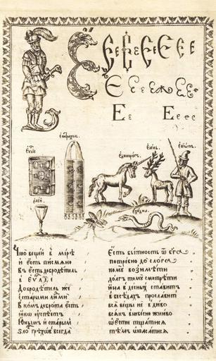 | Keywords: Karion Istomin's alphabet E.jpg en Karion Istomin's alphabet book letter Е ru Буква ь Ка иона Истомина буква Е Буква ь Ка иона Истомина http //istomin1694 narod ru/ Ка ион Истомин Леонтий Гунин 1694 PD-old-100 Karion Istomin's alphabet book Russian letter E Est letter Cyrillic E as an initial |