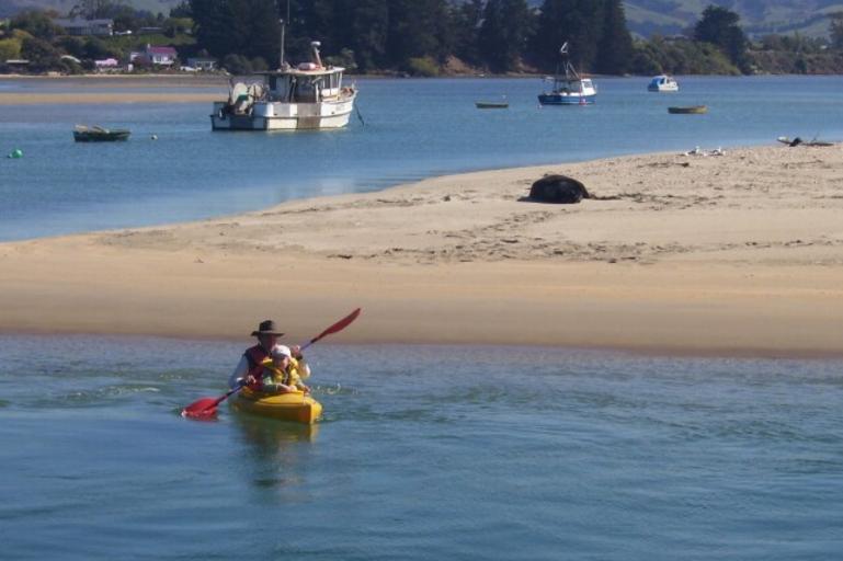 | Keywords: Karitane Channel.JPG en a Kayak in the Harbor Channel at Karatane Otago NZ with Sea Lion on the Beach Own Motorau 2006-09-29 Public Domain Larger Format East Coast South Island New Zealand sub 45 degrees south Karitane Kayaking in New Zealand |