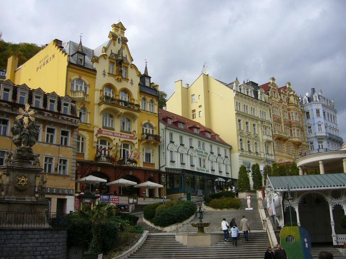 Keywords: Karlovy Vary 28.JPG gl Karlovy Vary Cidade Balneario República Checa Setembro 2007 Own Lala Lugo Tržiště Karlovy Vary Outside stairs in the Czech Republic Hotel Romance Puškin