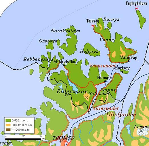 Keywords: Karlsøy map.jpg en Map of Karlsøy municipality Norway Own Jensens 2008-12-05 Maps of Troms Karlsøy