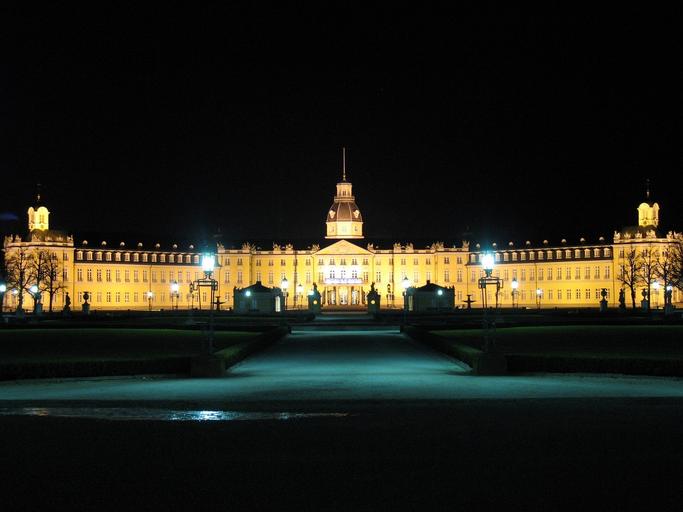 Keywords: karlsruhe palace historic architecture building tourism landscape night illuminated baden-wurttemberg park urban germany europe