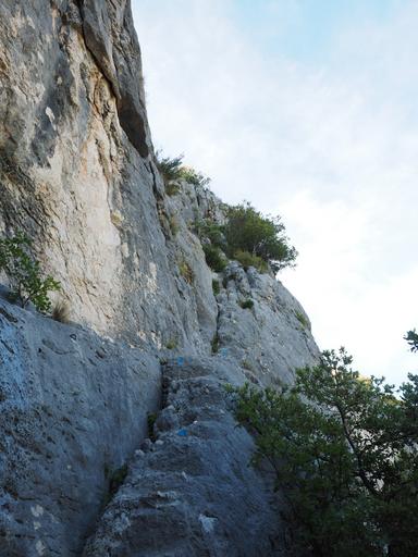 Keywords: karst area karst rock france provence fontaine-de-vaucluse rock wall rise away path sidewalk steep exposed narrow