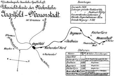 | Keywords: Karte Kochertalbahn Untere ca 1907.png Entwurfsskizze der Unteren Kochertalbahn Book Württembergische Eisenbahn-Gesellschaft Die Geschichte einer bedeutenden Privatbahn ISBN 3-613-01145-X page 177 1907 or before author PD-old Untere Kochertalbahn Rail transport maps of Baden-Württemberg |