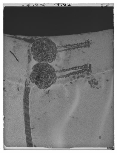 | Keywords: Kasack av scharlakansrött kläde som tillhört Karl X Gustav (1622-1660) - Livrustkammaren - 45345-negative.tif LSH artwork sv I 1671 års inv upptas tre plagg kasack tröja och byxor Kasacken och byxorna är sydda av scharlakansrött kläde Tröjan av silverbrokad Kasacken är liksom nr 3407 skuren i ett helt bakstycke som sneddats ut åt sidorna och rundats nertill och mitt bak klippts upp så att ett 34 cm långt sprund erhållits De 2 framstyckena är raka framtill och har likaledes sneddats ut i sidorna De är 94 5 cm långa från axelsömmens högsta punkt Sidosömmarna är hopsydda Framstyckena har inga ökningar sånär som på synnerligen minimala triangulära kilar längst ut i sidorna nedtill Bakstyckethar ca 40 cm från nederkanten i sidsömmarna en triangulär kil 7 cm hög på båda sidorna Kasacken är lik den föregående fast den gjorts mindre vid även vad beträffar ärmarna som dock avviker genom sin helt öppna slits Ärmarna består av 2 större stycken De är längs hela framsidan öppna ända från axeln utefter kanten har små remsor skarvats på det övre stycket Klädet 23x20 tr/cm2 har en vådbredd av minst 95 eller 135 5 cm beroende av på vilken led av tyget bakstycket är skuret Styckena har sytts ihop så att de långa sömmarna i sidorna kastats samman med rosafärgat 2-trådigt högertvinnat silke 3 á 4 stygn/cm från avigan De små skarvarna har man tydligen bemödat sig om att göra eleganta och så osynliga som möjligt Ytterkanterna är ej infållade utan endast klippta och man har sytt fast fodret med tråckelstygn sedan dess ytterkanter vikts in Kring halslinningen är en liten slå av dubbelvikt kläde som på utsidan är 1 cm hög Fodret utgörs av cinnoiberröd nu starkt blekt moiré Vådbredden är 104 cm utan stad 64x37 tr/cm2 Stad 0 9 cm 10 vita 10 röda 15 gröna 1 röd tråd tuskaft Då icke heller fodret har någon skarv i ryggstycket så när som på hörnskarvarna i sidorna har man här utnyttjat tygets stora bredd Mitt i ryggen syns vecket från tygets moirébehandling vattring Kasacken är nu berövad all sin garnering Blott rester av trådar och stygn samt rader av hål antyda att plagget varit garnerat med knappar och spetsar Man omnämner i 1675 års Klädkammarräkning att silverspetsar sprättats bort för att begagnas i samband med Karl XI s kröning Sålunda har höger framstycke 2 5 cm från kanten små hål efter 37 knappar och ärmarnas öppna bakstycken visar att 31 knappar här suttit på samma 2 5 cm avstånd från kanten Likaledes har sprundet bak på högra skörtet hål efter 15 knappar Inga knappar har sytts genom fodret Plagget har ej varit mellanfodrat men papper ligger ännu kvar runt de flesta sömmar för att ge styrsel vid spetsarnas fastsättande Kasacken är malskadad Man kan på dylika ställen med relativ lätthet räkna trådarna/cm2 och konstatera att klädet vävts av ofärgat ullgarn som sedan ryggats och färgats ty de malätna partierna är ljusa I halsen är kaplitzen d v s bandet delvis bevarat Det består av ett dubbelvikt 1 7 cm brett rosafärgat ripsband 22 inlsagstr/cm original caption 1647 silk Färg cinnoiberröd d2 - dräkt - foder material siden - broadcloth Färg scharlakansröd d1 - dräkt - yttermaterial material kläde LRK Karl X Gustav av Sverige Modelejon 2002 place of origin original filename LN_E04191 68489 inventory number LRK 31928 45345 CC0 Kasack av scharlakansrött kläde som tillhört Karl X Gustav 1622-1660 - Livrustkammaren - 45345 tif <gallery caption Different images of same object > File Kasack av scharlakansrött kläde som tillhört Karl X Gustav 1622-1660 - Livrustkammaren - 45387 tif File Kasack av scharlakansrött kläde som tillhört Karl X Gustav 1622-1660 - Livrustkammaren - 62509 tif File Kasack av scharlakansrött kläde som tillhört Karl X Gustav 1622-1660 - Livrustkammaren - 28268 tif File Kasack av scharlakansrött kläde som tillhört Karl X Gustav 1622-1660 - Livrustkammaren - 19706 tif File Kasack av scharlakansrött kläde som tillhört Karl X Gustav 1622-1660 - Livrustkammaren - 53948 tif File Kasack av scharlakansrött kläde som tillhört Karl X Gustav 1622-1660 - Livrustkammaren - 1609 tif File Röd dräkt som tillhört Karl X Gustav från 1647 - Livrustkammaren - 48035 tif File Kasack av scharlakansrött kläde som tillhört Karl X Gustav 1622-1660 - Livrustkammaren - 53906 tif </gallery> |