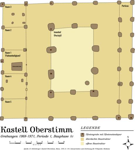 | View Original: | Kastell Oberstimm, Principia, Periode 1, Bauphase 1c, 1968-1971.svg (1683x1871) | |||