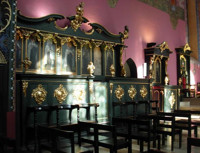 | Keywords: Katedra bydgoska - stalle pokarmelickie płn.jpg pl Katedra w Bydgoszczy Drewniane polichromowane rokokowe stalle siedmio-i dwudzielne 2 poł XVIII w pochodzące z kościoła karmelitów Na zapieckach stalli malowane obrazy świętych i błogosławionych karmelitów own Pit1233 2011 Cc-zero Stalls in Bydgoszcz Cathedral |