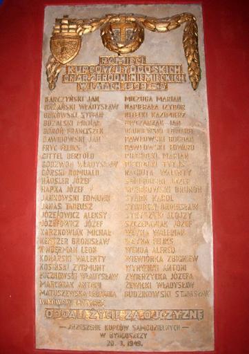 | Keywords: Katedra bydgoska - tablica ku czci kupców zamordowanych w czasie IIwś.jpg pl Katedra w Bydgoszczy Tablica w kruchcie kościelnej upamiętniająca 47 zamordowanych kupców bydgoskich 1949 przeniesiona z dawnej Resursy Kupieckiej own Pit1233 2011 Cc-zero Commemorative plaques and epitaphs of Bydgoszcz Cathedral |