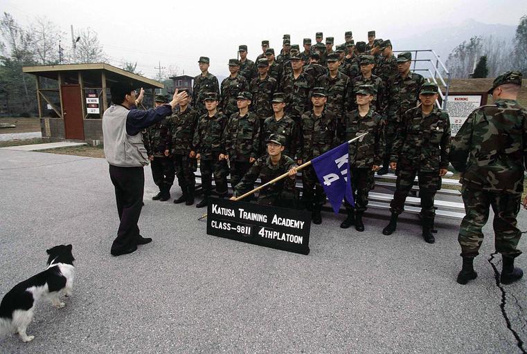 Keywords: KATUSA training academy.jpg A platoon of Korean Augmentees to the US Army KATUSA soldiers pose for a group photo a week before graduation from the KATUSA Training Center Camp Jackson Republic of Korea on Oct 30 1998 Originally begun in 1950 the KATUSA program was designed to augment US fighting forces just after the breakout of the Korean War After the armistice KATUSA soldiers remained with 8th Army units to enhance mission capability Korean enlistees attend a 20 day training program at the center where they refine their English language skills and learn about American culture as well as US Army structure and methods http //www dodmedia osd mil/DVIC_View/Still_Details cfm SDAN DDSD0001977 JPGPath /Assets/Still/2000/DoD/DD-SD-00-01977 JPG 1998-10-30 TSGT JAMES MOSSMAN Military of South Korea PD-USGov Group photographs of military people KATUSA |