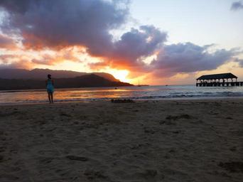 Keywords: kauai hawaii beach sand sunset clouds setting sun dusk hanalei bay hanalei bali hai