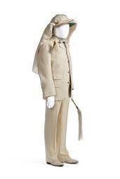 Keywords: Kavajkostym bestående av kavaj, väst och byxor. Tillhört Walther von Hallwyl - Hallwylska museet - 89103.tif KOSTYM kavaj- <br/><br/>Bestående av kavaj väst och byxor <br/><br/>Av vit cheviot samt med gulvita benknappar Hand- och maskinsydda <br/><br/>Kavaj Enradig livskuren med fyra knappar samt nedviken krage och korta slag i det vänstra ett knapphål; framstyckenas hörn rundade Ryggen med sid- och axelsömmar Knapparna runda fyrhåliga med plan framsida och stavformig kant Foder av smalrandigt vitt siden alpacka på högra framstycket en bröstficka; ärmfoder av smalrandigt crèmegult halvsiden <br/><br/>Mått Ärmhålsdjup 23 cm ; längd hel 76 cm ; ryggbredd halv 19 cm ; ärmlängd 80 cm ; bröstvidd fram 44 cm ; bröstvidd hel 106 cm ; livvidd 98 cm <br/><br/>Väst Enradig med sex knappar som de mindre i kavajen korta vinkelskurna slag samt två svagt snedskurna sidofickor samt på vänstra framstycket dessutom en dylik bröstficka alla med rak kantslå Ryggstycke av vit ylleklot ett stycke från nedre kanten två spänntampar med spänne av svartlackerad mässing och med två taggar tornar Nedtill i mitten ett sprund Fodret i rygg- och framstycken av blommig vit bomullssatin <br/><br/>Mått Schalöppning 31 cm Hel västlängd 70 cm <br/><br/>Byxor Upptill på vardera framstycket en snedskuren tvärficka Midjeband med hake och hyska knapp och knapphål samt sex hängselknappar Gylfen med fyra små knappar ock knapphål Midjebandet fodrat med rött skinn saffian bak- och gylffoder av vitt bomullstyg Fickor av vitt bomullstyg Knapphålen handsydda med vitt grovt silke eller vit bomullstråd <br/><br/>Mått Yttersöm längd 106 cm ; innersöm längd 82 cm ; livvidd 82 cm ; stussvidd 108 cm ; lårvidd 66 cm ; knävidd 48 cm ; vidd nedtill 46 cm <br/><br/>Förfärdigade efter beställning av Walther von Hallwyl i Oktober 1900 hos skrädderifirman Fr Kaedings Efterträdare Zittorin Lundvik hovleverantörer <br/><br/>Begagnad av Walther von Hallwyl under hans resa genom Egypten och Sudan tillsammans med sin maka dotter och svärson samt fröken Ida Uhse den 5 November 1900 till 29 Mars 1901 original caption Kavajkostym bestående av kavaj väst och byxor Tillhört Walther von Hallwyl Foto till boken Ett sekel av dräkt och mode ur de Hallwylska samlingarna <br/> Nyckelord Kavajer Cheviot Walther von Hallwyl Zittorin Lundvik Resedräkter Resa Föremålsbild Skor Ett sekel av dräkt och mode ur de Hallwylska samlingarna HWY Walther von Hallwyl place of origin Stockholm SE original filename hm_dig3307 8246 inventory number HWY XXI I A 03 89103 CC-BY-SA Jens Mohr <gallery caption Different images of same object > File Gentlemannen - om män och mode - Hallwylska museet - 85871 tif File Gentlemannen - om män och mode - Hallwylska museet - 85872 tif File Gentlemannen - om män och mode - Hallwylska museet - 85873 tif File Detalj av kostym Foto till boken Ett sekel av dräkt och mode ur de Hallwylska samlingarna - Hallwylska museet - 89347 tif File Kostym detalj Foto till boken Ett sekel av dräkt och mode ur de Hallwylska samlingarna - Hallwylska museet - 89386 tif </gallery> Jens Mohr Walther von Hallwyl Footwear Clothing on white background Clothing in the Hallwyl museum Male clothing Trousers Media contributed by LSH unmatched objKeyword Media contributed by LSH unmatched creator Media contributed by LSH unmatched keyword Media contributed by LSH 2013-10 |