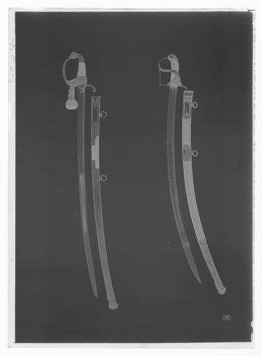 | Keywords: Kavalleriofficerssabel, Sverige, 1800-talets första hälft, fäste av s. k - Livrustkammaren - 35806-negative.tif Fäste av förgylld reliefornerade mässing kappa framtill i form av ett lejonhuvud med manen inramad av en slät list och baktill övergående i en nedåtgående hylsa utgörande kavelns överdel denna ornerad med stiliserade blad Handbygel i sin helhet bågformig överdelen intappad i lejongapet Mellandelen på båda sidor med ranka av klockformiga blad på mitten avbruten av en långsträckt rosett Bakre parerstång nedåtböjd ornerad med enkla snedställda blad och avslutad med en liten rosettornerad skiva Styrskenor stora formade som romber med insvängda sidor och tvärt avskurna hörn samt ornerade med en bröstbild av Minerva i profil åt v <br/>Kavel av ebenholts med mjukt rektangulärt tvärsnitt ut- och insidan med tätt inskuret rombiskt rutmönster <br/><br/>Klinga böjd eneggad högglanspolerad med vulstformig rygg Det 332 mm långa spetspartiet tvåeggat eggen dock oslipad original caption ca other date - 1800 1850 steel b2 - blankvapen - klinga material stål - brass b1 - blankvapen - fäste material mässing - ebony b6 - blankvapen - kavel och kavelklädsel material ebenholts size mm 1026 size mm 128 size mm 883 klinga size mm 32 klinga g 900 LRK Gustav hertig av Uppland prins 1827-1852 Haga slott Sverige place of origin original filename LN_B12744_015624 42173 inventory number LRK 5549 35806 CC0 Kavalleriofficerssabel Sverige 1800-talets första hälft fäste av s k - Livrustkammaren - 35806 tif <gallery caption Different images of same object > File Kavalleriofficerssabel Sverige 1800-talets första hälft fäste av s k - Livrustkammaren - 60708 tif </gallery> |