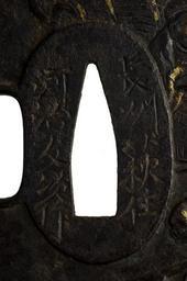 Keywords: Kawaji Tomotsugu - Tsuba with the Seven Gods of Fortune - Walters 51338 - Mark A.jpg The Seven Gods of Good Fortune Shichifukujin are a Japanese folk tradition that emerged from Buddhist Taoist and Shinto beliefs On the front Daikoku the god of wealth appears that the upper right with bales of rice Next to him is Jurôjin the god of wisdom or longevity At the bottom is Bishamon who is the god of warriors On the left is Ebisu the god of fishing or daily food On the reverse the remaining three gods are shown on the left side At the bottom is Fukurokuju the god of longevity In the middle is Benzaiten the only female and the goddess of music At the top is Hotei the god of happiness and good health Hotei's bag of treasures appears on the right These gods also appear individually and in other groupings Their spheres of influence are not fixed and they sometimes appear with other traits between 1669 1712 early Edo iron gilt shakudo shibuichi copper cm 8 8 8 5 0 45 accession number 51 338 22816 Henry Walters Baltimore date and mode of acquisition unknown Walters Art Museum Henry Walters Acquired by Henry Walters Place and Signature Choshu Hagi ju/Kawaji Tomotsugu saku; Translation Residing in Hagi Choshu province/made by Kawaji Tomotsugu place of origin Hagi Japan Walters Art Museum license Tsuba in the Walters Art Museum Kawaji Tomotsugu Media contributed by the Walters Art Museum needs category review |