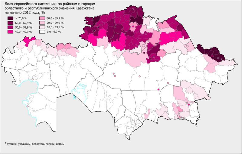 | Keywords: Kazakhstan European 2012 Rus.png ru Русский П оцентная доля ев опейского населения по айонам и го одам обл и есп значения Казахстана на начало 2012 года Kazakhstan rayons png Rarelibra http //www stat kz/publishing/2012/демог афия/Ап ель/12_2011_Б-15-10-Г rar Численность населения Республики Казахстан по отдельным этносам на начало 2012 года 2012-11-27 15 32 UTC Казахстан_Славяне_2010 png PlatonPskov Kazakhstan_rayons png Rarelibra derivative work Sergoman <span class signature-talk >talk</span> changed colors renew Sergoman Kazakhstan rayons png Legend 530132 более 70 82004D 60 0 - 69 9 B4006B 50 0 - 59 9 FF0097 40 0 - 49 9 FF9AC7 30 0 - 39 9 FCC7DF 20 0 - 29 9 FBE7F0 10 0 - 19 9 ffffff 0 0 - 9 9 Cc-zero Original upload log This image is a derivative work of the following images File Казахстан_Славяне_2010 png licensed with Cc-zero 2011-08-20T22 10 04Z PlatonPskov 1601x1025 114017 Bytes <nowiki>+Пет опавловск</nowiki> 2011-08-20T17 00 51Z PlatonPskov 1601x1025 113964 Bytes <nowiki>офо мление ук упнение ш ифта </nowiki> 2011-08-20T16 13 28Z PlatonPskov 1601x1025 112877 Bytes <nowiki> ru Русский П оцентная доля славянского населения по айонам и го одам обл и есп значения Казахстана 0</nowiki> Maps of ethnic groups in Kazakhstan Maps of the East Slavs White people |