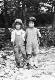 Keywords: Kazuo and Masuko Kamiya as Children WDL4038.png Artwork ru Кадзуо и асуко Камия в детстве fr Kazuo et Kamiya Masuko dans leur enfance en Kazuo and Masuko Kamiya as Children zh 儿童Kazuo和Masuko Kamiya pt Kazuo e Masuko Kamiya quando Crianças ar كازو وماسوكو كاميا وهم صغار ru а данном снимке сделанном п иблизительно в 1920 году изоб ажены двое детей из фе ме ского поселения Ямато на юге Фло иды основанного Джо Сакаем в 1905 году п и подде жке и содействии властей Фло иды кото ые ассчитывали на то что японцы п ивнесут в сельское хозяйство штата новые методы и культу ы Ямато д евнее название Японии Поселение асполагалось на те ито ии сов еменного Бока-Рейтон; фе ме ы поселения занимались вы ащиванием ананасов и зимних овощных культу Джо Сакай п изывал юношей и молодых мужчин из его одной де евни в Японии иязу пе еселяться в Ямато и это п едложение оказалось заманчивым для нескольких сотен иммиг антов поскольку индуст иализация и сок ащение сельскохозяйственных угодий делали жизнь фе ме ов в Японии все более зат уднительной ногие пе еселенцы оставались в Ямато совсем недолго; некото ые из них ве нулись в Японию а некото ые пе еехали в д угие егионы в том числе на западное побе ежье Соединенных Штатов К началу Вто ой ми овой войны мало кто их японских пе еселенцев оставался в Ямато В 1942 году вско е после нападения на Пе л-Ха бо когда антияпонские наст оения достигли пика феде альное п авительство конфисковало земли поселенцев свыше 6000 ак ов 2428 гекта ов под создание учебного полигона авиации сухопутных войск США и поселение Ямато п ек атило свое существование Бывший житель поселения Ямато Джо дж о иками де жал фе му в Дел ей-Бич до 70-х годов XX века а затем пе едал свои земли ок угу Палм-Бич для основания узея о иками и па ка Японские сады <br>Дети; Дети иммиг антов; Аме иканские дети японского п оисхождения fr Cette photographie prise vers 1920 montre deux jeunes enfants de la colonie de Yamato une communauté agricole dans le sud de la Floride fondée par l'immigré japonais Jo Sakai en 1905 avec le soutien des autorités de la Floride qui pensaient que les Japonais allaient introduire de nouvelles méthodes agricoles et de nouvelles cultures Yamato était un nom antique du Japon La communauté était située dans ce qui est maintenant Boca Raton et les agriculteurs cultivèrent des ananas et plus tard des légumes d'hiver Jo Sakai encouragea les jeunes hommes de son village au Japon Miyazu à s'établir à Yamato une perspective qui séduisit plusieurs centaines d'immigrants car l'industrialisation et la pénurie de terres rendaient l'agriculture au Japon de plus en plus difficile Beaucoup des colons ne restèrent pas longtemps certains retournèrent au Japon et d'autres partirent ailleurs en quête de meilleures opportunités y compris sur la côte ouest des États-Unis Peu des colons japonais étaient encore présents lors de la Seconde Guerre mondiale En 1942 peu de temps après l'attaque de Pearl Harbor où le sentiment anti-japonais était à son comble le gouvernement fédéral confisqua les terres appartenant aux colons soit plus de 2 428 hectares 6 000 acres - pour créer une base militaire de formation d'Air Corp mettant un terme à la colonie de Yamato Un ancien colon de la colonie Yamato George Morikami cultiva sa ferme à Delray Beach jusqu'aux années 1970 et fit donation de ses terres au comté de Palm Beach pour établir ce qui devint le Musée Morikami et les jardins japonais <br>Enfants; Enfants d'immigrés; Enfants nipo-américains en This photograph taken about 1920 shows two young children of the Yamato Colony a farming community in south Florida founded by Japanese immigrant Jo Sakai in 1905 with the encouragement of Florida authorities who thought the Japanese would introduce innovative farming methods and new crops Yamato was an ancient name for Japan The community was located in what is now Boca Raton and the farmers grew pineapples and later winter vegetables Jo Sakai encouraged young men from his Japanese village Miyazu to settle at Yamato a prospect that appealed to several hundred immigrants as industrialization and shortages of land had made farming in Japan increasingly difficult Many of the settlers did not stay for long; some went back to Japan and others moved elsewhere for greater opportunities including to the west coast of the United States Few of the Japanese settlers remained by World War II In 1942 not long after the Pearl Harbor attack when anti-Japanese sentiment was at a peak the federal government confiscated land belonging to the settlers more than 6 000 acres 2 428 hectares to create an Army Air Corp training base ending the Yamato Colony A former Yamat