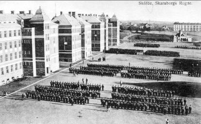 | Keywords: KBGF.010892.jpg sv Skaraborgs regemente Skövde uppställt på kaserngården öster om kasernbyggnaderna I bakgrunden till höger Livhusarkasernen 2016-08-20 18 35 32 http //digitaltmuseum se/011013047951 digitaltmuseum se Karlsborgs fästningsmuseum other versions cc-zero Skaraborgs regemente Images from Karlsborgs fästningsmuseum |