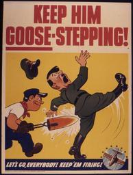 Keywords: Keep him goose-stepping^ Let's go, everybody^ Keep `em firing^ - NARA - 534762.jpg Scope and content General notes 534762 Local identifier 179-WP-911 Office for Emergency Management War Production Board 01/1942 - 11/03/1945 Still Picture Records Section Special Media Archives Services Division NWCS-S National Archives at College Park 8601 Adelphi Road College Park MD 20740-6001 other date circa 1942 1943 Record group Record Group 179 Records of the War Production Board 1918 - 1947 Record group ARC 508 War Production Board compiled 1942 - 1943 Series ARC 533858 File unit File unit ARC Variant control numbers NAIL Control Number NWDNS-179-WP-911 Other versions <gallery> File Keep_him_goose-stepping _Let's_go _everybody _Keep_`em_firing _-_NARA_-_534762 tif tif File Keep_him_goose-stepping _Let's_go _everybody _Keep_`em_firing _-_NARA_-_534762 jpg jpg </gallery> NARA-cooperation PD-USGov World War II posters from the United States Caricatures of Adolf Hitler Goose step General Motors Hitler in Allied propaganda |