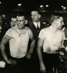 | Keywords: Kees Pellenaars en Adolf Schön.jpg Wielrenner Pellenaars links met Schön met wie hij samen de Zesdaagse van Parijs won Parijs 13 oktober 1936 Dutch racing cyclist Pellenaers to the left with Schön Together they won the Paris six-day race Paris October 13 1936 http //www spaarnestadphoto nl Fotonummer SFA022003315 1936-10-13 Fotograaf onbekend/Unknown photographer Collectie SPAARNESTAD PHOTO/Het Leven/Fotograaf onbekend PD-old Kees Pellenaars 1936 Cyclists from Germany Schön Adolf Images from Spaarnestad Photo |