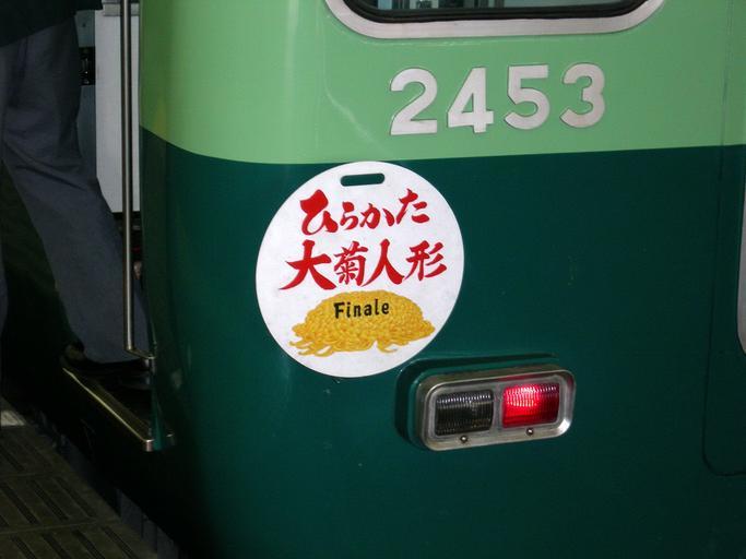 | Keywords: Keihan 2453 kikuningyo Finale DSCN0715 20051109.JPG Hirakata Dai Kikuningyo Great Chrysanthemum-shaped puppet Finale taken in 2005 京阪2400系電車2453に掲げられた ひらかた大菊人形 Finaleのヘッドマーク 投稿 が撮影(2005年 京橋駅) Own Ogiyoshisan 2005-11-09 Train headboards in Japan Chrysanthemums in art Keihan 2400 series Hirakata Park November 2005 in Japan Taken with Nikon Coolpix 7900 |