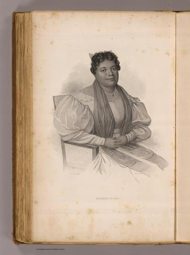 | Keywords: Kekauluohi (4442.055).jpg en Kekāuluohi Sketched by A T Agate; engraved by Welch and Walter Charles Wilkes described the encounter in his Narrative of the United States Exploring Expedition p 4 <blockquote>The person who attracted our attention most was Kekauluohi This lady is upwards of six feet in height; her frame is exceedingly large and well covered with fat She was dressed in yellow silk with enormously large gigot sleeves and wore on her head a tiara of beautiful yellow feathers interspersed with a few of a scarlet colour Above the feathers appeared a large tortoise-shell comb that confined her straight black hair Her shoulders were covered with a richly embroidered shawl of scarlet crape She sat in a large arm-chair over which was thrown a robe made of the same kind of yellow feathers as decked her tiara Her feet were encased in white cotton stockings and men s shoes She was altogether one of the most remarkable-looking personages I have ever seen </blockquote> http //www davidrumsey com/luna/servlet/detail/RUMSEY~8~1~32625~1151995 David Rumsey Map Collection Sketched by Creator Alfred Thomas Agate Engraved by Welch and Walter drawn 1838 1842 published 1845 PD-old-100 Kekāuluohi Hawaii in the 1840s United States Exploring Expedition Alfred Thomas Agate |