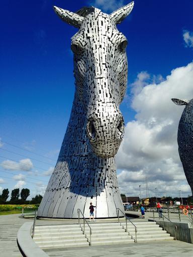 Keywords: kelpie horse mythical water sculpture scotland statue falkirk silver horse head sky