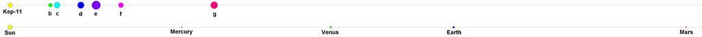 Keywords: Kepler-11 sideview withsolarsystem.png File Kepler-11 side view with solar system svg en en Kepler-11 planetary system with inner solar system comparison star diameters are true while plantary diameters are scaled up by a factor of 50 own Tomruen 2011-02-03 Kepler-11 |