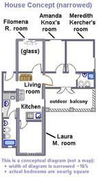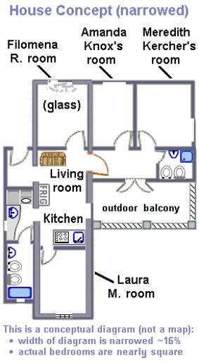 Keywords: Kercher Knox house Perugia concept.gif Concept diagram of the Kercher/Knox house in Perugia Italy during November 2007 It was the scene of the Murder of Meredith Kercher The diagram is a rough drawing of the upstairs flat or apartment about 16 narrower than the actual house and is not a map and has no legend/ruler as in a scaled map It is merely a rough concept of the area as indicated in numerous photos of the house Origin Per en WP OI an original image is not original research unless it advances some novel viewpoint References There are some floor-plan maps which support the layout of the concept diagram but with window placement wall dimensions and furniture positions more accurate See http //friendsofamanda org/miscellaneous/fingerprint_map_small jpg FOA-fing-map Own 2011-04-05 original 2010-02-05 User Wikid77 Early variation File Kercher Knox house Perugia Italy gif architecture Cc-zero Floor plans of Italy Crime scenes Murder of Meredith Kercher