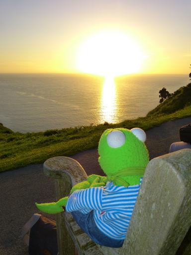 Keywords: kermit frog sunset to watch outlook sea romantic holiday