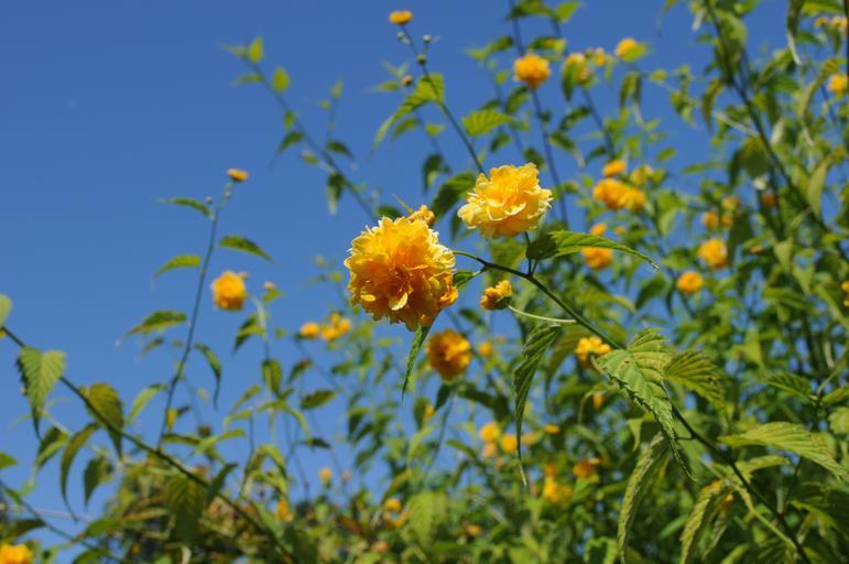 | Keywords: Kerria japonica. CC0 waiver: To the extent possible under law, I waive all copyright and related or neighboring rights to this work. Kerria japonica. CC0 waiver: To the extent possible under law, I waive all copyright and related or neighboring rights to this work. Kerria japonica at Hulda Klager Lilac Gardens.jpg en Flowers stems and leaves of Kerria japonica in bloom with yellow flowers at Hulda Klager Lilac Gardens Own Dcoetzee 45 53 48 756 N 122 45 13 71 W alt 8_source exif_heading cc-zero Hulda Klager Lilac Gardens Kerria japonica cultivars Yellow flowers on blue background Kerria japonica. CC0 waiver: To the extent possible under law, I waive all copyright and related or neighboring rights to this work. |