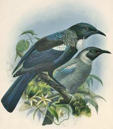 | Keywords: Keulemans tui.jpg  Prosthemadera novaezealandiae en Tui Adult and young A pair of tui seen in profile perched on branches with native clematis in flower The nearer adult bird shows its full range of plumage colour and a wattle The younger bird has no wattle and is mostly grey in plumage with blue on its wings only From Buller W L A History of the Birds of New Zealand 1st ed London 1873 opp p 87 Alexander Turnbull Library URL http //digital natlib govt nz/get/27951 profile access Reference No PUBL-0134-087 Present image has been cropped and levels etc adjusted 1873 Keulemans John Gerrard 1842-1912 Out of Copyright worldwide thumb left PD-old checked WikiProject Birds Prosthemadera novaeseelandiae PD Old files uploaded by User Kahuroa A History of the Birds of New Zealand by Buller |