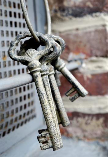Keywords: key keychain old metal iron close security door key