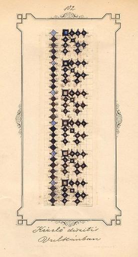 Keywords: Kezelodiszites vulkanban.jpg en shirt-cuff ornament pattern from cca 1880 from Vulcan then small village in Hunedoara County from the open-access book by István and Gábor Téglás http //www neprajz hu/tartalom php menu2 435 Népviseleti díszítmények Hunyadmegyében István Téglás 1853-1915 1885 PD-old Clothing of Romania Vulcan Romania |