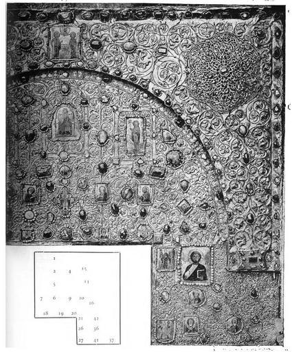| Keywords: Khakhuli icon (2).JPG Khakhuli icon Portion of the central panel thumb Explanation of the numbered images from the source in Russian Иван Иванович Толстой икодим Павлович Кондаков Русские д евности в памятниках искусства Выпуск 4 Х истианские д евности К ыма Кавказа и Киева С -Пете бу г Типог афия инисте ства путей сообщения А Бенке 1891 Published 1891 Author PD-RusEmpire Khakhuli triptych | ||||