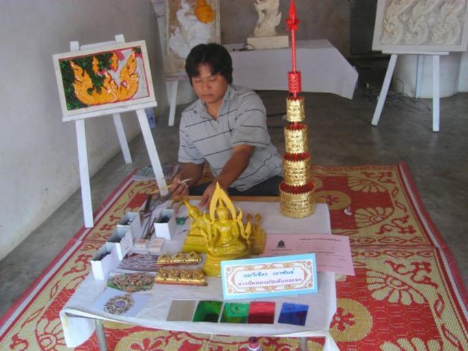 | Keywords: Khao Wang 013.JPG การสาธิตการปิดทอง อุทยานประวัติศาสตร์พระนครคีรี Phra Nakhon Khiri historical park Khao Wang Phetchaburi Thailand 2006 Photo by User Tevaprapas 2006 อุทยานประวัติศาสตร์พระนครคีรี Khao Wang own 2006 Khao Wang Palace Phetchaburi Crafts of Thailand |