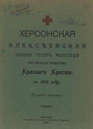 | Keywords: Kherson Alex. Community Report 1914 (01) - Cover.jpg en Kherson Alexeevskaya Community of Sisters of Mercy by Russian Red Cross Society at 1914 year Year Report Title cover ru Хе сонская Алексеевская община сесте милосе дия Росссийского общества К асного К еста в 1914 году Годовой отчёт Обложка 1915 http //www mycity kherson ua/gallery/thumbnails php album 34 author Custom license marker 2013 01 08 PD-old-70 Uploaded with UploadWizard Kherson Alexeevskaya Community of Sisters of Mercy 1915 books |
