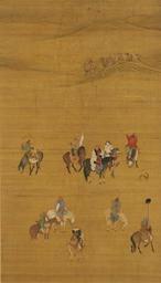 Keywords: KhubilaiOnTheHunt.jpg en Liu Guandao Khubilai Khan on the Hunt Chinese no characters sorry for that Yuan Shizu chulie tu Paint and ink on silk Painted in 1280 now located in the National Palace Museum in Taipei 劉貫道 元世祖出猟図 軸 元・至元17年(1280) 絹 色 182 9 x 104 1 cm 台北市 国立故宮博物院 Attributed to Liu Guandao 劉貫道 / of the reproduction National Palace Museum in Taipei Institution National Palace Museum Dschingis Khan und seine Erben exhibition catalogue München 2005 p 299 1280 <gallery> File Liu-Kuan-Tao-Jagd JPG File Khubilai Khan Hunting-Detail of a Falconer png File Khubilai Khan Hunting-Detail of a Hunter with Cheetah png </gallery> PD-old-100 Paintings in the National Palace Museum Kublai Khan Paintings of mountains Hunting by horse in paintings Camels in art Paintings of the Yuan Dynasty Karst topography in Guangxi Ink and wash paintings in China Landscape paintings of China Scrolls of China Chinese literati paintings Chinese silk Ancient Chinese art Paintings from China Horse riding in Chinese art Collections of art in China Art from Asia 1280 paintings Liu Guandao |
