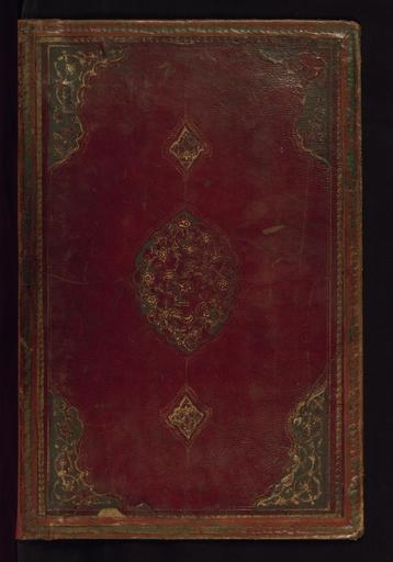 | Keywords: Khwand Mulla Mahdi Sahhaf-i Tabrizi - Binding from Three Collections of Poetry - Walters W657binding - Bottom Exterior.jpg This non-original red leather binding from Walters manuscript W 657 has a central medallion pendants and cornerpieces with no flap The binding has gold-painted arabesque decoration It was re-bound and restored by a bookbinder of Tabriz Khwand Mulla Mahdi Sahhaf-i Tabrizi see note signed and dated 1295 AH/AD 1878 on front flyleaf iia islamic 1878 1295 red leather with gold Folio cm 28 19 accession number W 657 binding 83322 Mundir date and mode of acquisition unknown seal impression with motton on fol 280b Khwand Mulla Mahdi Sahhaf-i Tabrizi Tabriz 1295 AH/AD 1878 mode of acquisition unknown note regarding re-binding and restoration of this volume by the bookbinder on front flyleaf iia Henry Walters Baltimore date and mode of acquisition unknown Walters Art Museum Henry Walters Acquired by Henry Walters place of origin India Walters Art Museum license 2D Islamic manuscripts in the Walters Art Museum Media from the Walters Art Museum no creator template Media contributed by the Walters Art Museum needs category review |