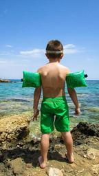 Keywords: kid boy looking sea beach child happy fun summer vacations