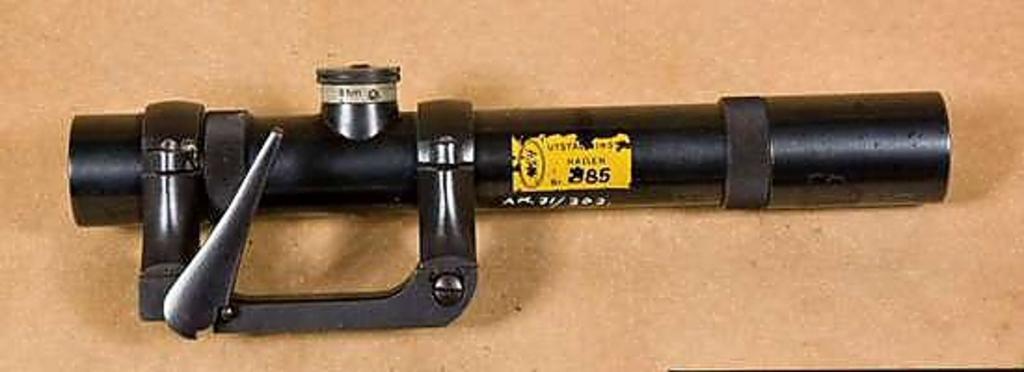 | Keywords: Kikarsikte m-1944 (AGA 3x65) för prickskyttegevär m-1941 - Armémuseum.jpg en Rifle scope m/1944 AGA 3x65 for Swedish Mauser sniper rifle m/1941 From the collections of Armémuseum Swedish Army Museum Stockholm It offers 3x magnification and features a 24 mm objective lens making it a 3x24 telescopic sight in modern terminology Armémuseum The Swedish Army Museum through the Digital Museum http //www digitaltmuseum se For copyright waiver see AM 047776 Armémuseum The Swedish Army Museum PD-old Military weapons of Sweden Swedish Mauser Firearms in the Swedish Army Museum Images from Swedish Army Museum Telescopic sights |
