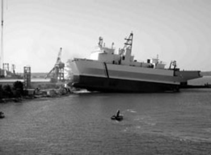 | Keywords: Kilo Moana launch, 2001-11-17.jpg en Launch of the U S Navy-constructed R/V Kilo Moana the newest oceanographic research vessel at a ceremony in Jacksonville Florida on November 17 2001 The Kilo Moana is an AGOR26 swath ship that will be operated by the University of Hawaii After completion of sea trials NSF will fund research using the vessel in the latter half of 2002 Photo courtesy of Naval Sea Systems Command http //www nsf gov/pubs/2002/nsf02055/nsf02055_7g htm US Navy 2001-11-17 PD-USGov-Military-Navy Kilo Moana AGOR-26 |