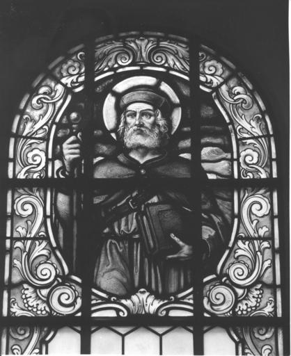| Keywords: Kirche Betschwanden Fridolinsfenster.jpg en Stained glass window with the patron saint of the Kanton of Glarus Switzerland Fridolin von Säckingen Archives Kirchgemeinde Grosstal Kirchgemeinde Grosstal 1975 Stained glass windows in the canton of Glarus Kirche Betschwanden Saint Fridolin |